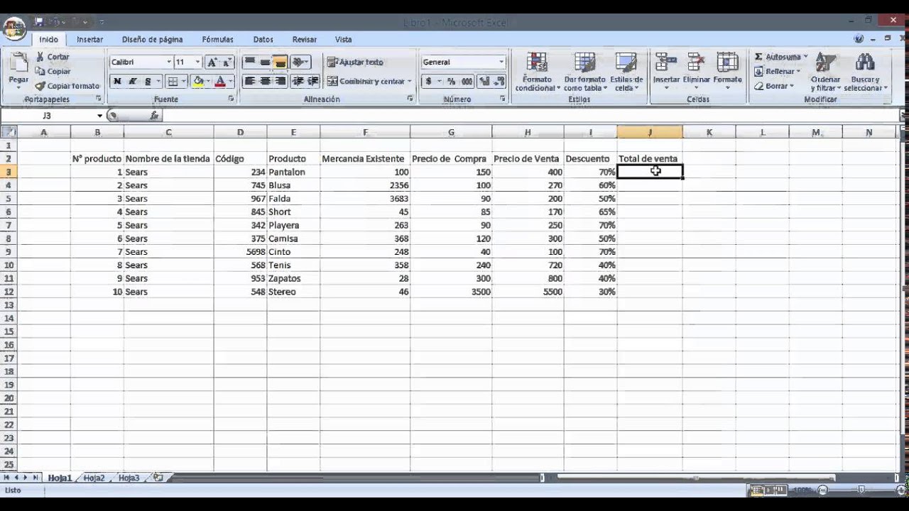 - Agrega los datos de tu inventario: A partir de la segunda fila, ingresa la información de cada producto en las columnas correspondientes.